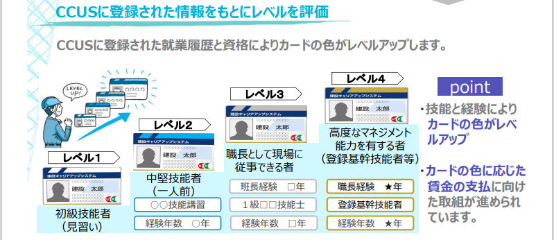 CCUSポータルサイト(国土交通省)求職者向けリーフレットより抜粋(https://www.mlit.go.jp/tochi_fudousan_kensetsugyo/const/content/jobseekerCCUS.pdf)
